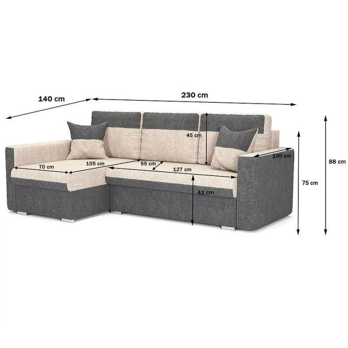 W przypadku narożnika Flavio powierzchnia spania po rozłożeniu wynosi 130x200cm. Siedzisko wypełnione jest sprężyną bonell, która dzięki swoim właściwościom zapewnia wysoki komfort podczas wypoczynku. Narożnik Flavio cechuje także funkcjonalność - posiada pojemnik do przechowywania - dodatkowe miejsce pomoże utrzymać porządek. Zastosowany sposób rozkładania w tym modelu to Delfin.