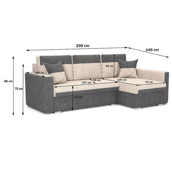 W przypadku narożnika Flavio powierzchnia spania po rozłożeniu wynosi 130x200cm. Siedzisko wypełnione jest sprężyną bonell, która dzięki swoim właściwościom zapewni wysoki komfort podczas wypoczynku. Narożnik Flavio cechuje także funkcjonalność - posiada jeden pojemnik do przechowywania - dodatkowe miejsce pomoże utrzymać porządek. Zastosowany sposób rozkładania w tym modelu to Delfin.