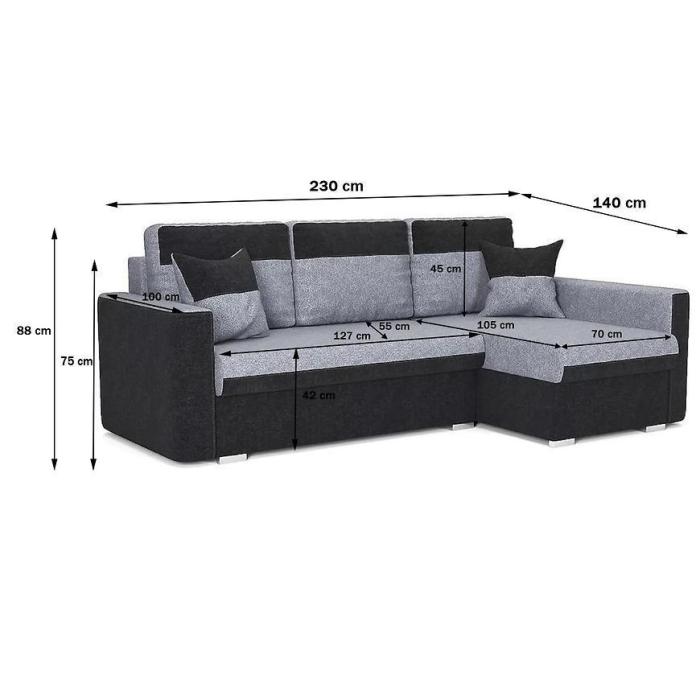 W przypadku narożnika Flavio powierzchnia spania po rozłożeniu wynosi 130x200cm. Siedzisko wypełnione jest sprężyną bonell, która dzięki swoim właściwościom zapewni wysoki komfort podczas wypoczynku. Narożnik Flavio cechuje także funkcjonalność - posiada pojemnik do przechowywania - dodatkowe miejsce pomoże utrzymać porządek. Zastosowany sposób rozkładania w tym modelu to Delfin.