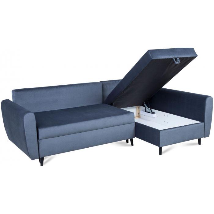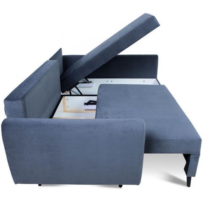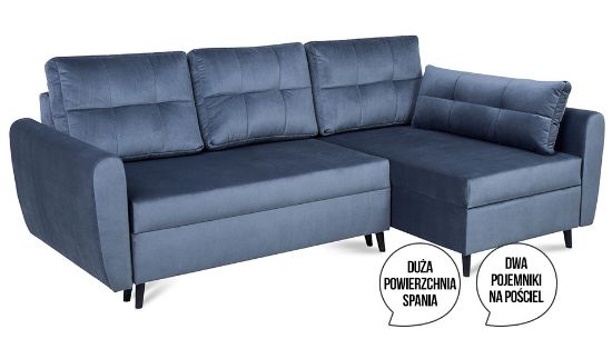 Powierzchnia spania po rozłożeniu narożnika wynosi 142x212 cm. Siedzisko wypełnione jest sprężyną bonell i pianką, które poprawiają jakość wypoczynku. Narożnik rozkładany Focus posiada dwa pojemniki na pościel - dodatkowe miejsce do przechowywania pomoże utrzymać porządek. Użyty w tym modelu sposób rozkładania to DL.