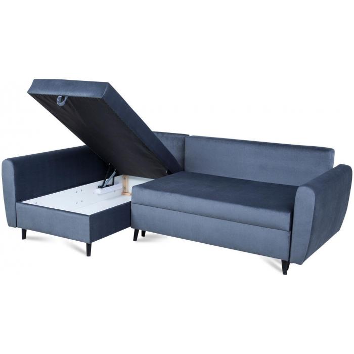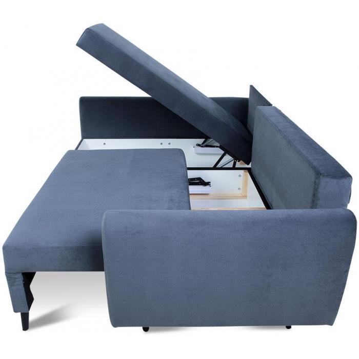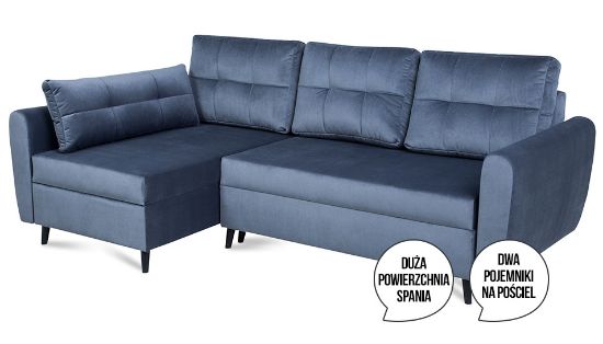 Powierzchnia spania po rozłożeniu narożnika wynosi 142x212 cm. Siedzisko wypełnione jest sprężyną bonell i pianką, które poprawiają jakość wypoczynku. Narożnik rozkładany Focus posiada dwa pojemniki na pościel - dodatkowe miejsce do przechowywania pomoże utrzymać porządek. Użyty w tym modelu sposób rozkładania to DL.