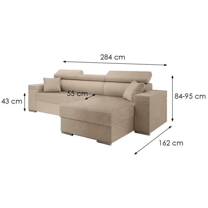 Model Focus S Doha został wyposażony w funkcję spania z powierzchnią o wymiarach 120x228 cm, co czyni go praktycznym rozwiązaniem dla gości. Dodatkowy pojemnik na pościel pozwala na wygodne przechowywanie kołder i poduszek, pomagając utrzymać porządek w salonie. Regulowane zagłówki umożliwiają indywidualne dopasowanie oparcia do własnych preferencji, co zwiększa komfort siedzenia.