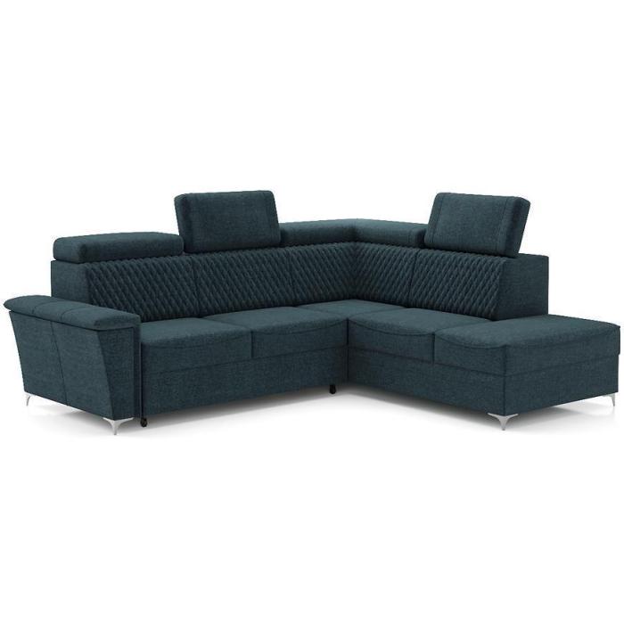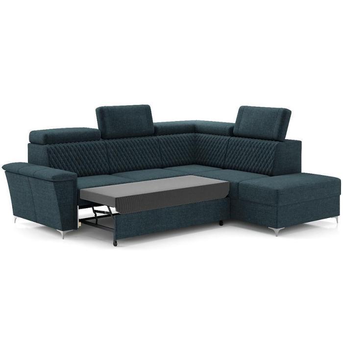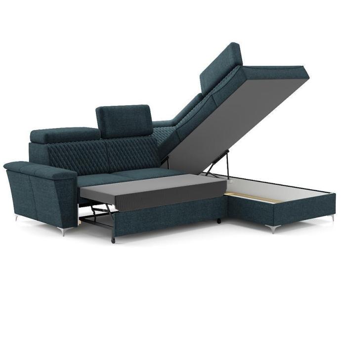 Narożnik Garry z funkcją spania został pokryty tkaniną. Prostotę i łatwość użytkowania gwarantuje system rozkładania typu delfin. Jest to szybki, prosty i wygodny sposób rozkładania. Jest jednym z najbardziej popularnych systemów rozkładania, który jest wykorzystywany w narożnikach. Po rozłożeniu to okazjonalne miejsce do spania o wymiarach 123x203 cm. Mebel posiada pojemnik, do którego można schować pościel, dodatkowe koce czy też poduszki. W siedzisku zastosowano sprężynę bonell i falistą, która dostosowuje się do ciężaru i kształtu ciała, zapewniając tym samym wysoki komfort siedzenia. Ten niepowtarzalny mebel wypoczynkowy stworzono z myślą o funkcjonalności i eleganckim wyglądzie. Narożnik dostępny w wersji prawostronnej i lewostronnej.