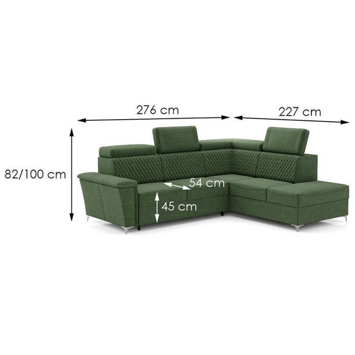 Narożnik Garry z funkcją spania został pokryty tkaniną. Prostotę i łatwość użytkowania gwarantuje system rozkładania typu delfin. Jest to szybki, prosty i wygodny sposób rozkładania. Jest jednym z najbardziej popularnych systemów rozkładania, który jest wykorzystywany w narożnikach. Po rozłożeniu to okazjonalne miejsce do spania o wymiarach 123x203 cm. Mebel posiada pojemnik, do którego można schować pościel, dodatkowe koce czy też poduszki. W siedzisku zastosowano sprężynę bonell i falistą, która dostosowuje się do ciężaru i kształtu ciała, zapewniając tym samym wysoki komfort siedzenia. Ten niepowtarzalny mebel wypoczynkowy stworzono z myślą o funkcjonalności i eleganckim wyglądzie. Narożnik dostępny w wersji prawostronnej i lewostronnej.