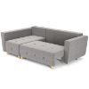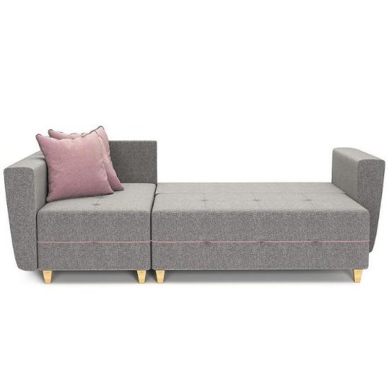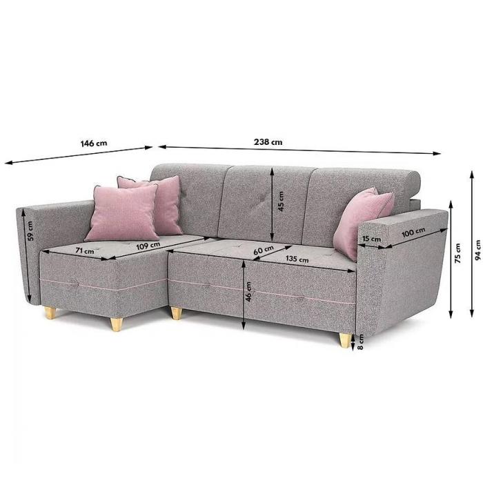 Narożnik z serii Grey Enzo to doskonała propozycja dla osób ceniących ponadczasową elegancję w aranżacjach. Jego design uzupełni zarówno nowoczesne wnętrza, jak i tradycyjnie urządzone pomieszczenia. Z kolei uniwersalny, popielaty kolor będzie się komponował zarówno z jasnymi, jak i ciemnymi barwami. O wysokiej jakości wypoczynku decyduje zastosowanie sprężyn falistych w siedzisku. Rozszerza jej zastosowanie o rolę stabilnego i wygodnego. Prosty i wygodny system rozkładania DL - najpierw wysuwamy siedzisko, a następnie składamy oparcie. Praktycznym walorem mebla jest również obecność pakownego pojemnika na pościel. Do zestawu dołączono ozdobne poduszki, które kontrastując z popielatym odcieniem tkaniny obiciowej, sprawiają, że całość prezentuje się jeszcze bardziej atrakcyjnie. Narożnik Grey Enzo w wersji prawej i lewej z całą pewnością będzie elegancką i unikalną ozdobą stylowego salonu.
