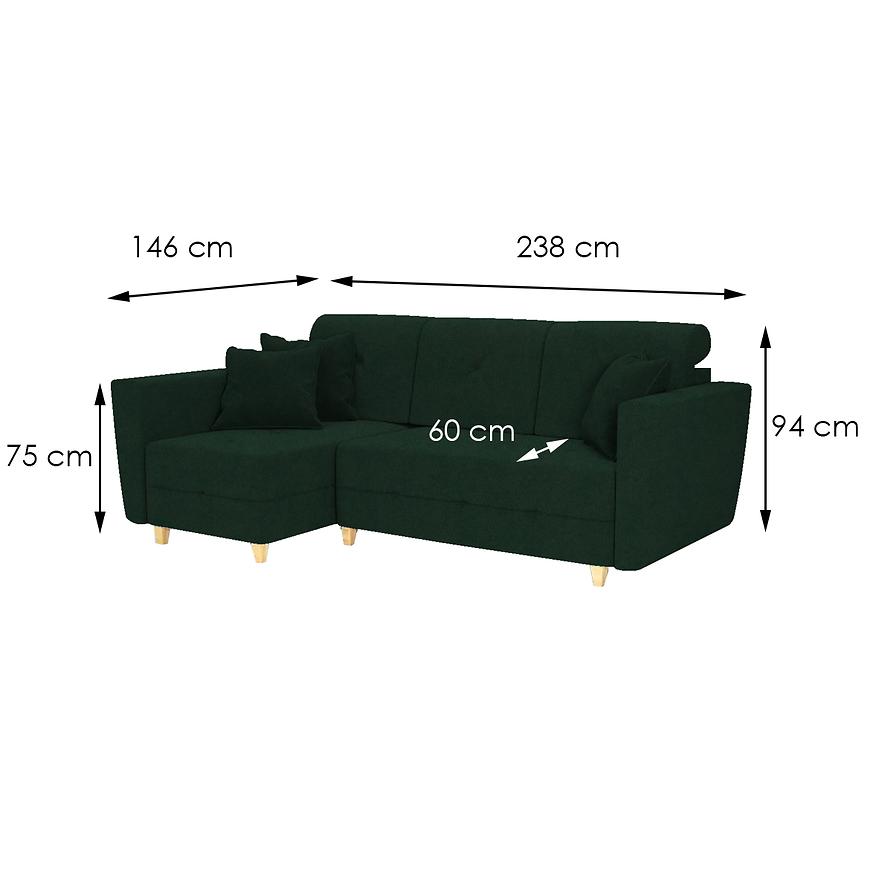 Narożnik Grey L Riviera 38 łączy elegancję z funkcjonalnością, tworząc idealne miejsce wypoczynku w salonie. Zielona tapicerka z wysokiej jakości tkaniny wnosi świeży, nowoczesny akcent, a sprężynowe wypełnienie siedziska zapewnia komfort na co dzień. W kształcie litery L, z funkcją spania 145x206 cm i pojemnikiem na pościel, narożnik sprawdza się zarówno w codziennym użytkowaniu, jak i podczas nocowania gości. System DL umożliwia szybkie rozkładanie, a poduszki w komplecie i naturalne nogi podkreślają styl mebla. Wersja lewa, waga 116 kg, wymaga złożenia.