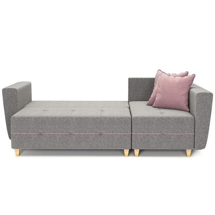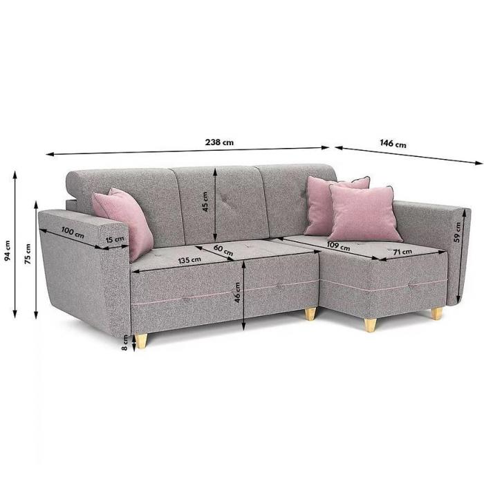 Narożnik z serii Grey Enzo to doskonała propozycja dla osób ceniących ponadczasową elegancję w aranżacjach. Jego design uzupełni zarówno nowoczesne wnętrza, jak i tradycyjnie urządzone pomieszczenia. Z kolei uniwersalny, popielaty kolor będzie się komponował zarówno z jasnymi, jak i ciemnymi barwami. O wysokiej jakości wypoczynku decyduje zastosowanie sprężyn falistych. Prosty i wygodny system rozkładania DL - najpierw wysuwamy siedzisko, a następnie składamy oparcie. Praktycznym walorem mebla jest również obecność pakownego pojemnika na pościel. Do zestawu dołączono ozdobne poduszki, które kontrastując z popielatym odcieniem tkaniny obiciowej, sprawiają, że całość prezentuje się jeszcze bardziej atrakcyjnie. Narożnik Grey Enzo w wersji prawej i lewej z całą pewnością będzie elegancką i unikalną ozdobą stylowego salonu.