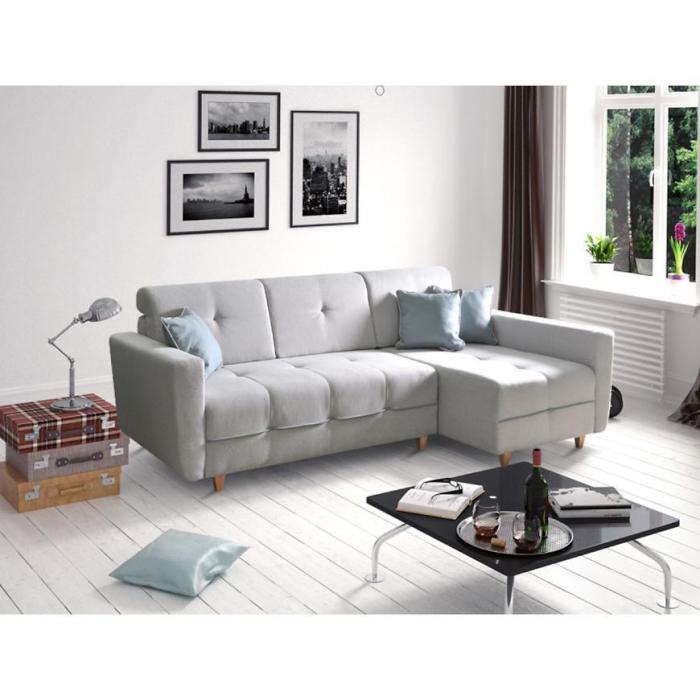 Narożnik z serii Grey Enzo to doskonała propozycja dla osób ceniących ponadczasową elegancję w aranżacjach. Jego design uzupełni zarówno nowoczesne wnętrza, jak i tradycyjnie urządzone pomieszczenia. Z kolei uniwersalny, popielaty kolor będzie się komponował zarówno z jasnymi, jak i ciemnymi barwami. O wysokiej jakości wypoczynku decyduje zastosowanie sprężyn falistych w siedzisku. Prosty i wygodny system rozkładania DL - najpierw wysuwamy siedzisko, a następnie składamy oparcie. Praktycznym walorem mebla jest również obecność pakownego pojemnika na pościel. Do zestawu dołączono ozdobne poduszki, które kontrastując z popielatym odcieniem tkaniny obiciowej, sprawiają, że całość prezentuje się jeszcze bardziej atrakcyjnie. Narożnik Grey Enzo w wersji prawej i lewej z całą pewnością będzie elegancką i unikalną ozdobą stylowego salonu.