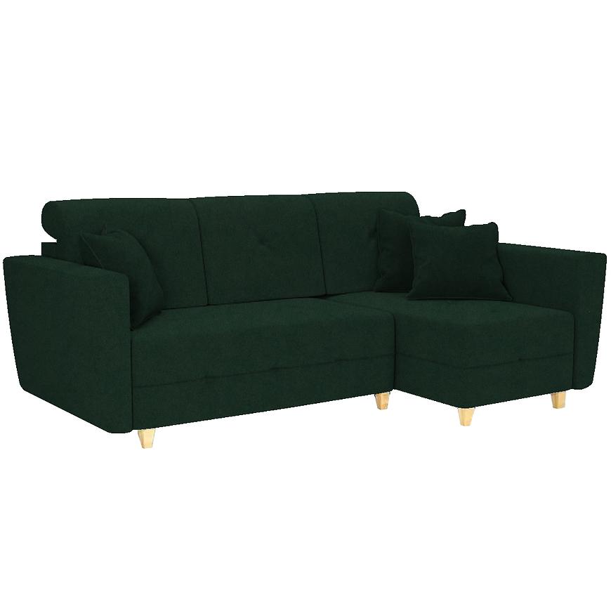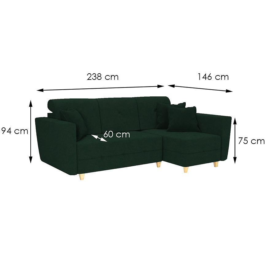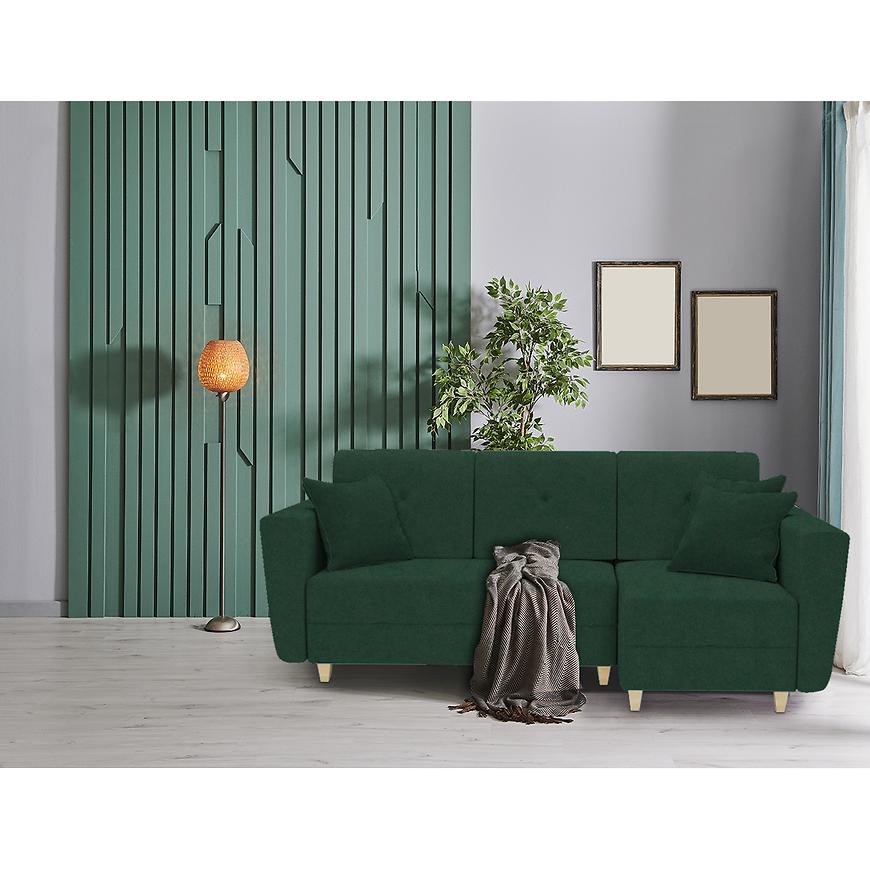 Narożnik Grey P Riviera 38 to połączenie stylu, wygody i praktyczności, idealne do salonu. Zielona tapicerka z wysokiej jakości tkaniny nadaje wnętrzu świeży, nowoczesny charakter, a sprężynowe wypełnienie siedziska zapewnia maksymalny komfort codziennego użytkowania. Narożnik w kształcie litery L wyposażono w funkcję spania o wymiarach 145x206 cm oraz pojemnik na pościel, co czyni go praktycznym rozwiązaniem na co dzień i na noc dla gości. System DL ułatwia szybkie rozkładanie, a poduszki w komplecie i naturalne nogi dopełniają elegancję mebla. Wersja prawa, waga 116 kg, wymaga złożenia.