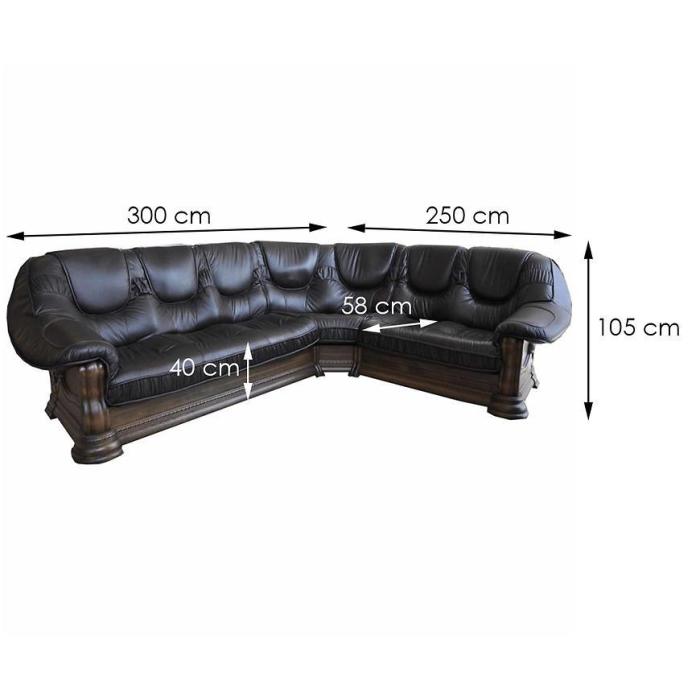 Narożnik z serii Grizzly Antique to mebel wypoczynkowy tapicerowany skórą w kolorze brązowym sprawia, że narożnik wkomponuje się zarówno w salon, jak i pokój dzienny do spotkań z rodziną i znajomymi. Elegancki narożnik z serii Grizzly Antique to mebel wypoczynkowy łączący wygodę z atrakcyjnym wyglądem. Narożnik bez funkcji spania w kształcie litery L i wymiarach 300x250x105 z pewnością pomieści całą rodzinę i znajomych. Oryginalnego stylu dodają tej kanapie stabilne drewniane nóżki. Posiada wygodne siedzisko, w którym zastosowano wysoce elastyczne sprężyny bonell . Ciekawego i eleganckie charakteru dodają narożnikowi przeszycia na oparciu. Narożnik Grizzly Antique to niepowtarzalny mebel wypoczynkowy stworzono z myślą o funkcjonalności i eleganckim wyglądzie. Narożnik dostępny w wersji prawej i lewej.