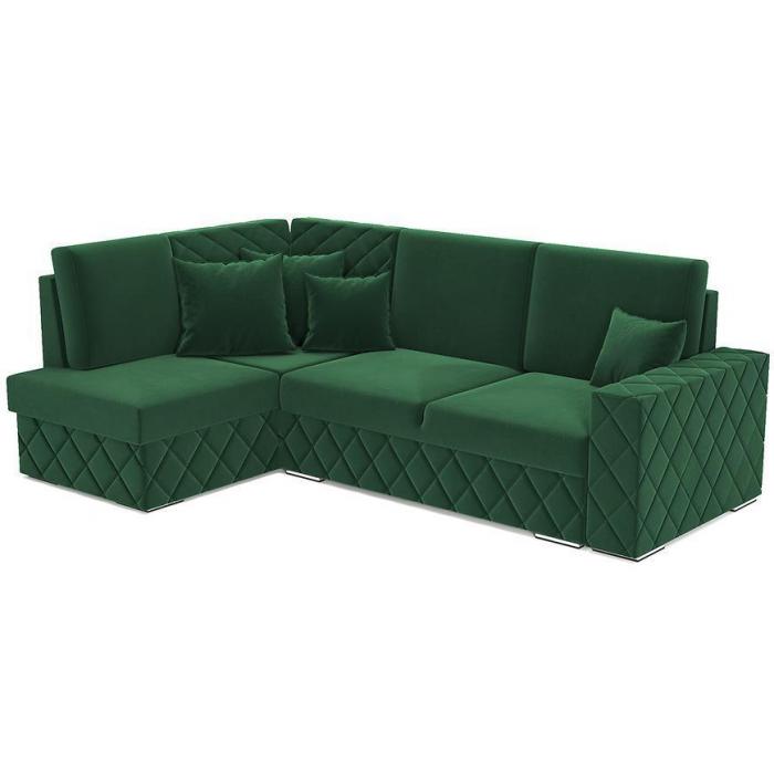 Tapicerka narożnika wykonana jest z przyjemnej w dotyku tkaniny. Lekko profilowane oparcie oraz podłokietniki poprawią jakość wypoczynku. Małe ozdobne poduszki oraz przeszycia stanowią element dekoracyjny, który świetnie współgra z całą konstrukcją nadając jej nietuzinkowego charakteru.