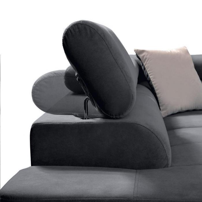 Nowoczesny, rozkładany narożnik z funkcją spania okazjonalnego i pojemnikiem na pościel to bardzo praktyczne rozwiązanie. Powierzchnia spania po rozłożeniu narożnika wynosi 125x208 cm. Zastosowany sposób rozkładania w tym modelu to delfin. Dodatkowo, kanapa posiada jeden pojemnik na pościel. Dodatkowe miejsce do przechowywania docenią właściciele zwłaszcza mniejszych przestrzeni. Regulowane, ruchome zagłówki oraz lekko profilowane oparcie zapewnią komfortowy wypoczynek.