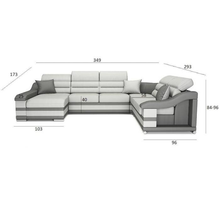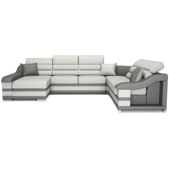 Tapicerka wykonana jest z ekoskóry. Lekko profilowane oparcie, ruchome zagłówki -poprawią jakość wypoczynku. Małe ozdobne poduszki oraz dwukolorowe wstawki świetnie współgrają z całą konstrukcją nadając jej nietuzinkowego charakteru. Kanapa narożna Hamilton to doskonały wybór do Twojego salonu!