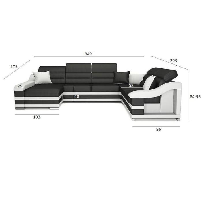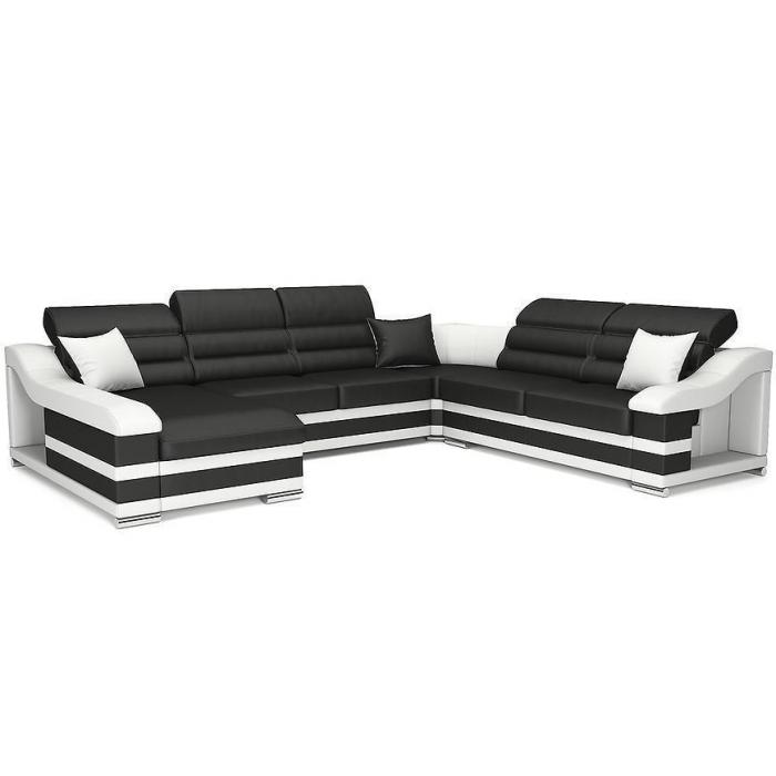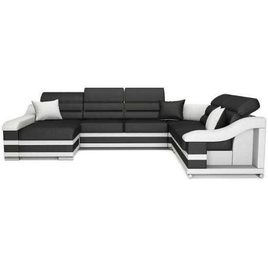 Tapicerka wykonana jest z ekoskóry. Lekko profilowane oparcie, ruchome zagłówki - poprawią jakość wypoczynku. Małe ozdobne poduszki oraz dwukolorowe wstawki świetnie współgrają z całą konstrukcją nadając jej nietuzinkowego charakteru. Kanapa narożna Hamilton to doskonały wybór do Twojego salonu!