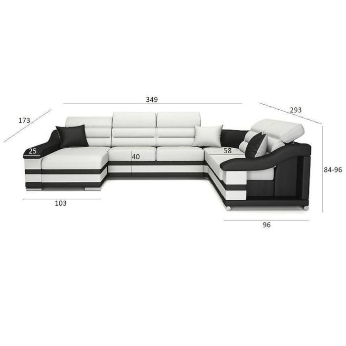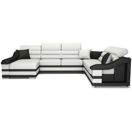 Tapicerka wykonana jest z ekoskóry. Lekko profilowane oparcie, ruchome zagłówki- poprawią jakość wypoczynku. Małe ozdobne poduszki oraz dwukolorowe wstawki świetnie współgrają z całą konstrukcją nadając jej nietuzinkowego charakteru. Kanapa narożna Hamilton to doskonały wybór do Twojego salonu!