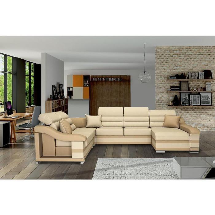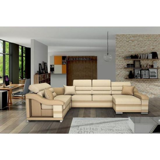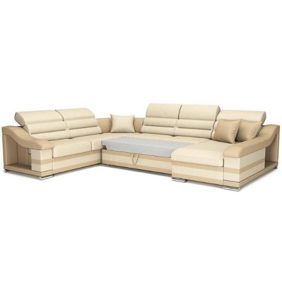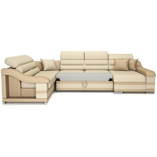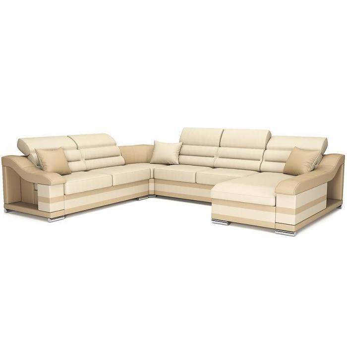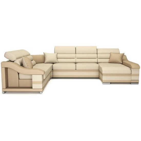 Tapicerka wykonana jest z ekoskóry. Lekko profilowane oparcie, ruchome zagłówki i podłokietniki poprawią jakość wypoczynku. Małe ozdobne poduszki oraz dwukolorowe wstawki świetnie współgrają z całą konstrukcją nadając jej nietuzinkowego charakteru. Kanapa narożna Hamilton to doskonały wybór do Twojego salonu!