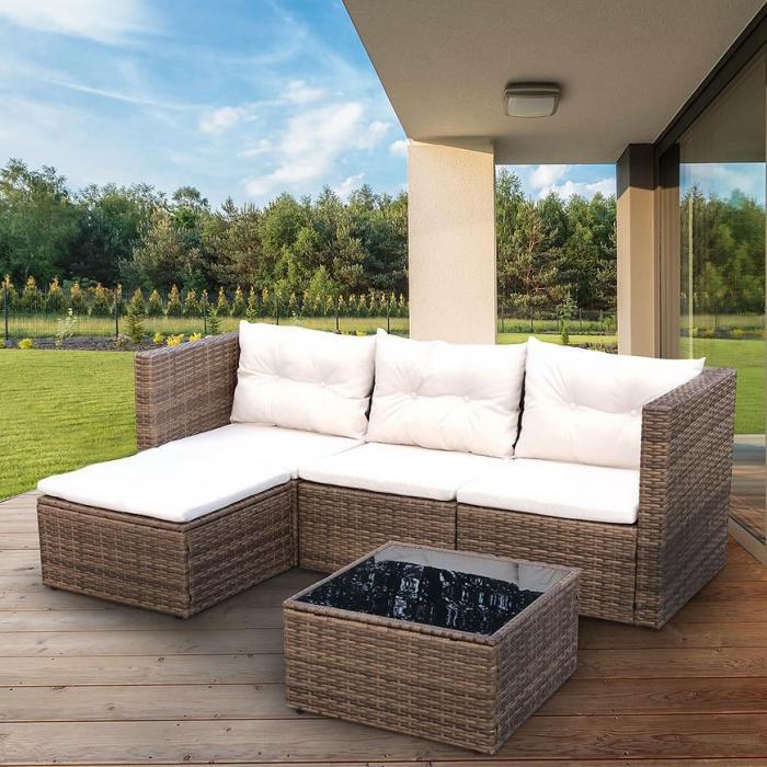 Komplet mebli technorattanowych to idealne rozwiązanie do każdego ogrodu czy na taras gdzie z przyjemnością spędzisz wszystkie letnie popołudnia i weekendy wraz ze znajomymi czy rodziną. Komplet składa się z 5 elementów wraz z poduszkami. Blat stolika jest wytrzymały, wykonany bowiem ze szkła hartowanego, konstrukcja z kolei jest metalowa.