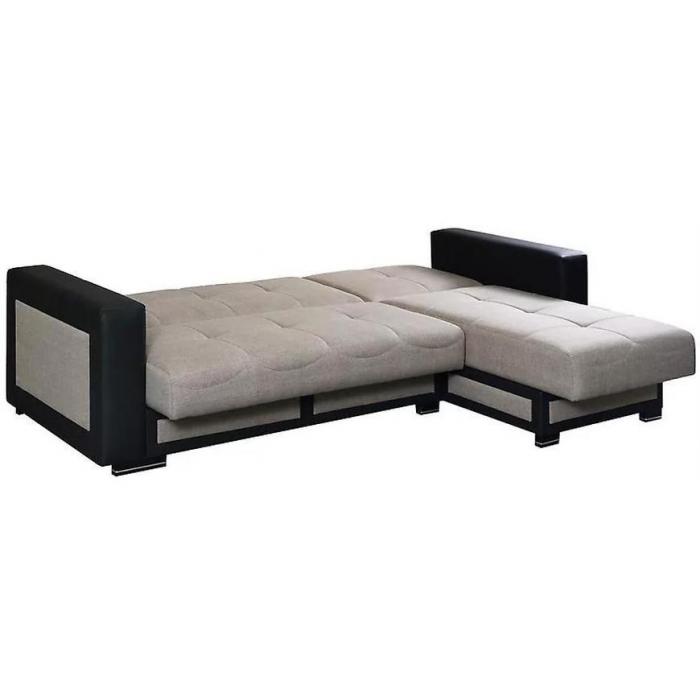 Rozkładana sofa narożna Madras z funkcją spania okazjonalnego, posiada dodatkowe miejsce do przechowywania w postaci dwóch pojemników na pościel. Zastosowany sposób rozkładania w tym modelu to automat wersalkowy. Powierzchnia spania po rozłożeniu narożnika wynosi 130x210 cm. Lekko profilowane oparcie oraz podłokietniki zapewniają komfortowy wypoczynek.