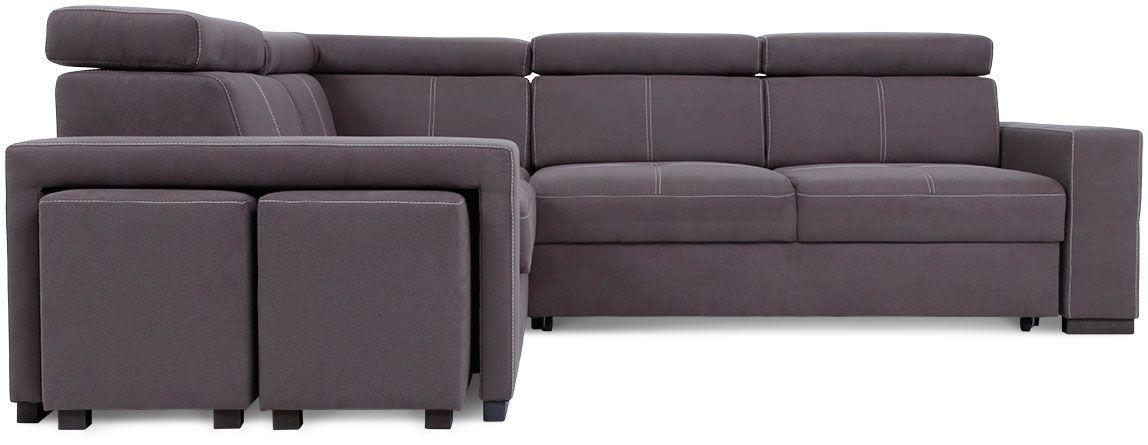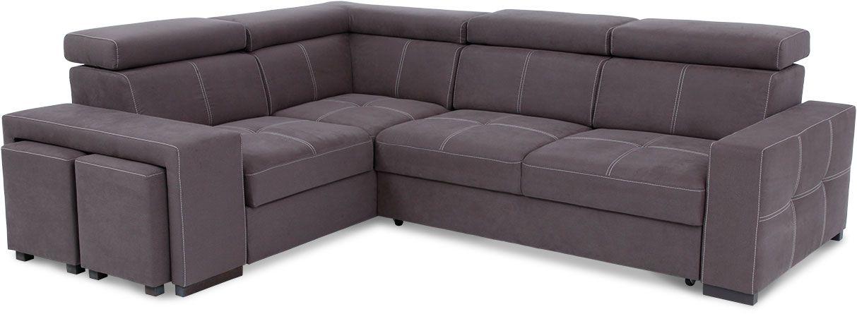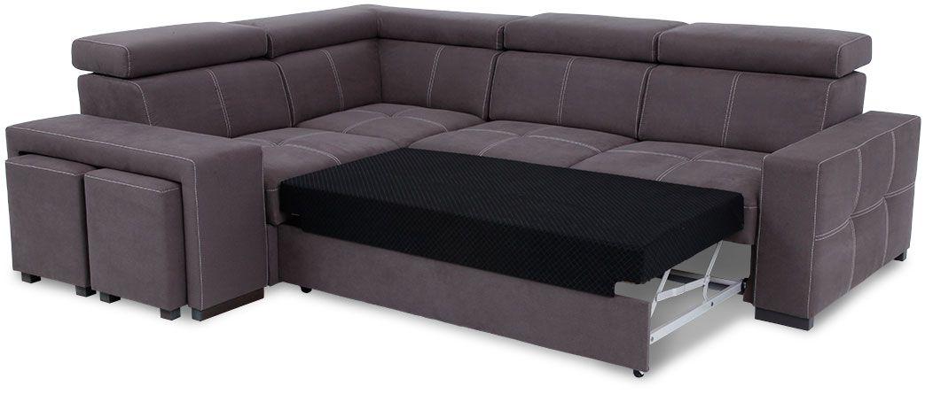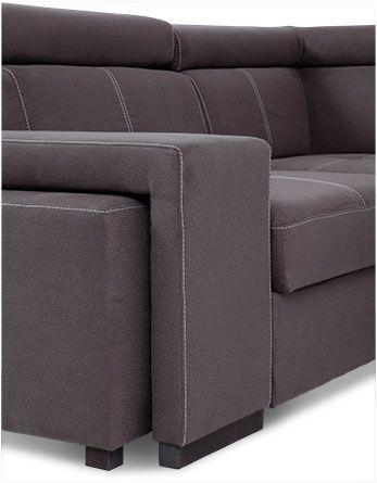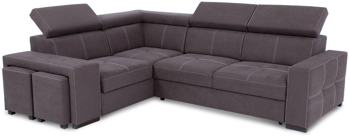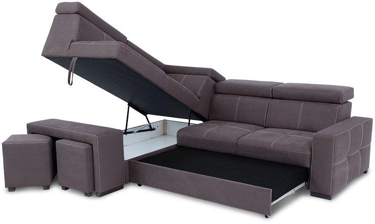 Narożnik Huston z pufami to naprawdę solidny mebel wypoczynkowy, na którym z powodzeniem zmieści się kilka osób! Dodatkowo, w boku narożnika są schowane dwie pufy, które w razie potrzeby można wyjąć i stworzyć dodatkowe miejsce do siedzenia. Jest to narożnik z funkcją spania (sposób rozkładania "wózek"), wyposażono go w bardzo funkcjonalny pojemnik na pościel. Komfort użytkowania podnoszą regulowane zagłówki. Narożnik Huston z pufami jest również meblem bardzo estetycznym. Ma ozdobne przeszycia, tapicerka utrzymana jest w odcieniu ciemnego brązu. Idealnie pasuje do wnętrz klasycznych i nowoczesnych, za każdym razem świetnie uzupełniając aranżację. Solidne materiały zastosowane do produkcji sprawiają, że w doskonałym stanie służy przez wiele lat!