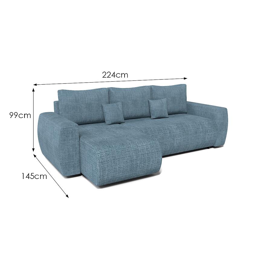 Ten niebieski narożnik z funkcją spania to połączenie estetycznego wyglądu z codzienną wygodą. Solidna konstrukcja o wadze 113 kg, pojemnik na pościel oraz komfortowe wypełnienie sprawiają, że mebel spełni oczekiwania osób poszukujących praktycznego wyposażenia salonu. Narożnik nie jest modułowy i wymaga złożenia, co warto uwzględnić przy planowaniu zakupu. To dobry wybór do nowoczesnych wnętrz, w których liczy się wygoda, kolor i dobrze zaplanowana przestrzeń.