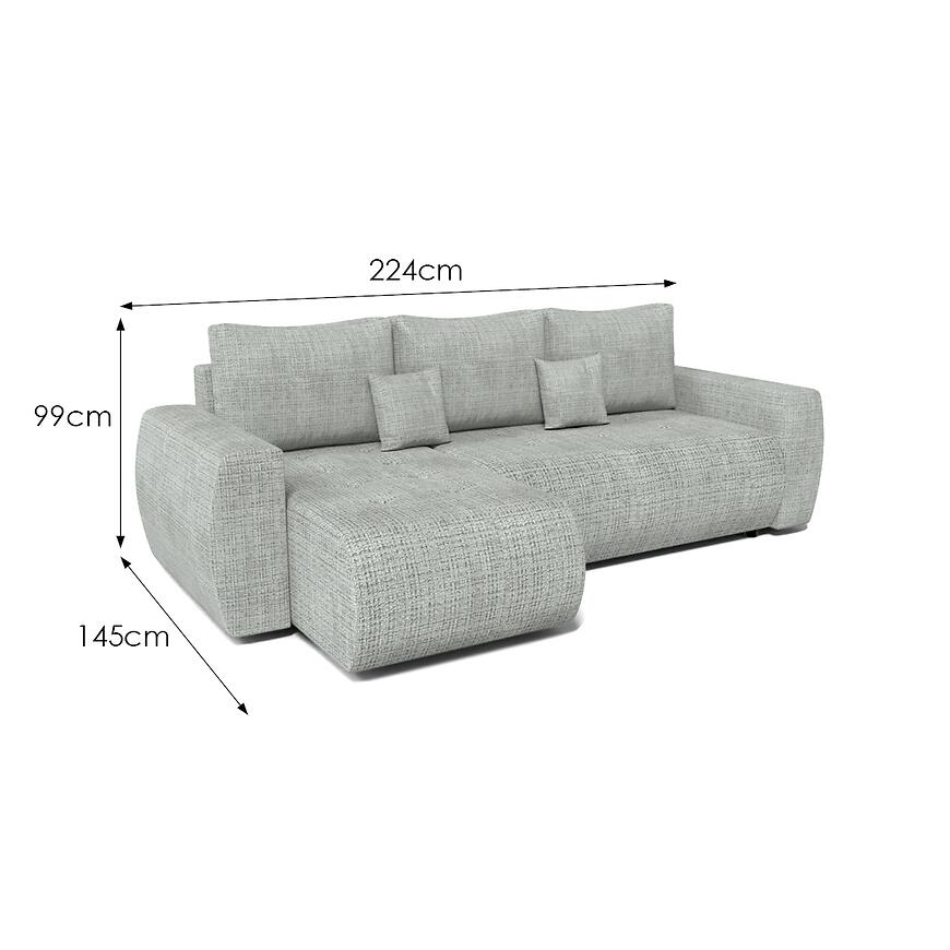 Ten beżowoszary narożnik z funkcją spania łączy elegancki wygląd z praktycznymi rozwiązaniami do codziennego użytku. Solidna konstrukcja o wadze 113 kg, pojemnik na pościel oraz komfortowe wypełnienie zapewniają wygodę i funkcjonalność w salonie lub pokoju dziennym. Narożnik nie jest modułowy i wymaga złożenia, co warto uwzględnić przy planowaniu zakupu. To idealna propozycja dla osób poszukujących nowoczesnego, komfortowego i estetycznego narożnika.