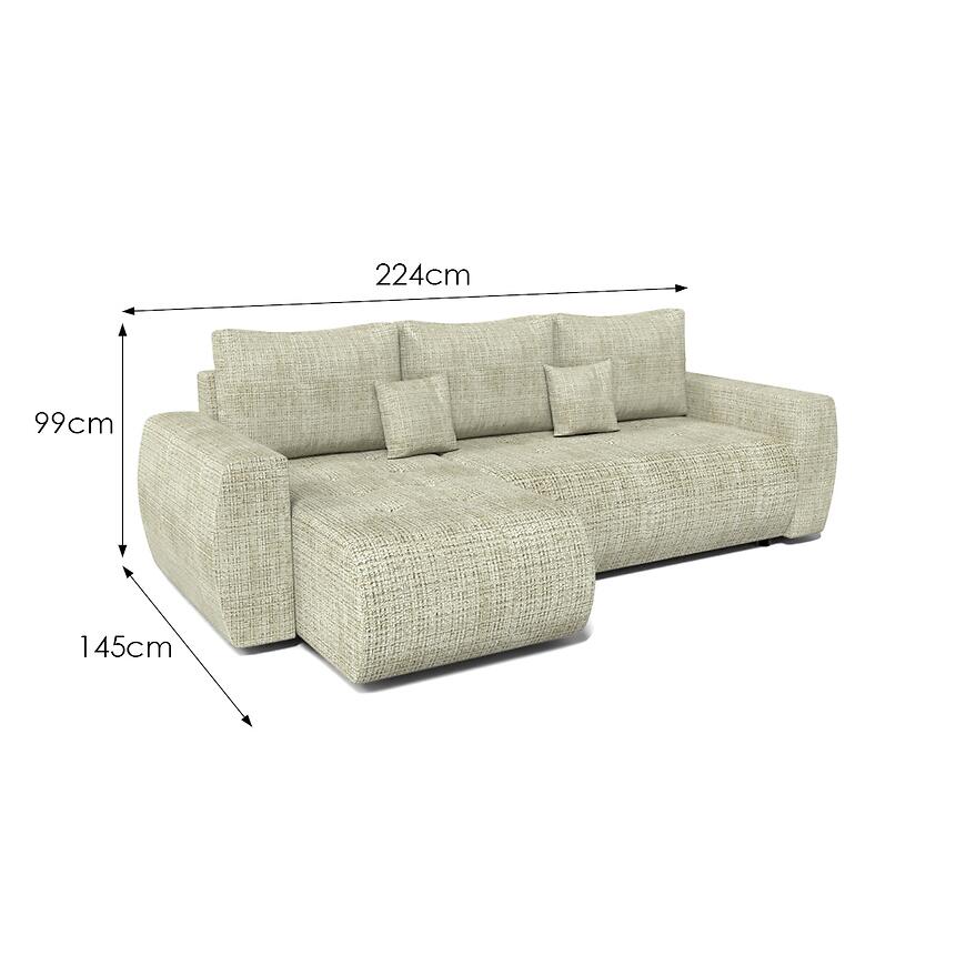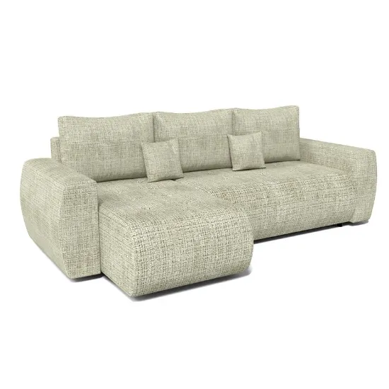 Ten nowoczesny narożnik beżowy z funkcją spania łączy estetykę z praktycznym zastosowaniem. Solidna konstrukcja o wadze 113 kg, pojemnik na pościel oraz wygodne wypełnienie czynią go dobrym wyborem dla osób ceniących komfort i spójny wygląd wnętrza. Narożnik wymaga złożenia i nie jest meblem modułowym, co warto uwzględnić przy planowaniu zakupu.