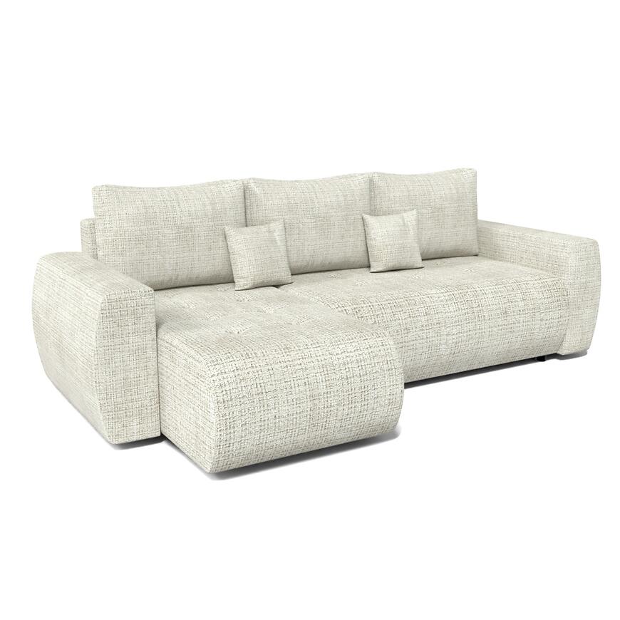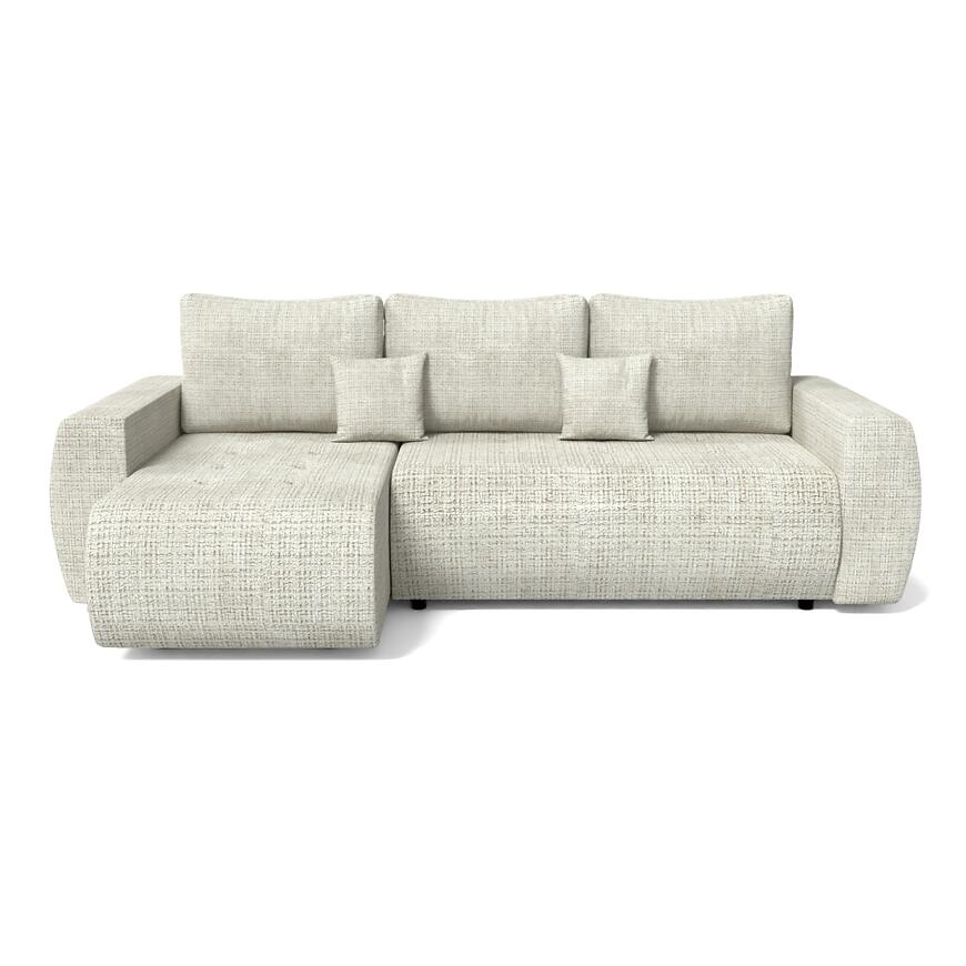 Ten beżowy narożnik z funkcją spania łączy estetykę z praktycznym zastosowaniem. Sprawdzi się jako codzienne miejsce relaksu, a wieczorem jako wygodne łóżko. Styl nowoczesny, neutralna kolorystyka oraz przemyślane wymiary czynią go atrakcyjnym wyborem dla osób urządzających salon z myślą o komforcie i spójnej aranżacji wnętrza.
