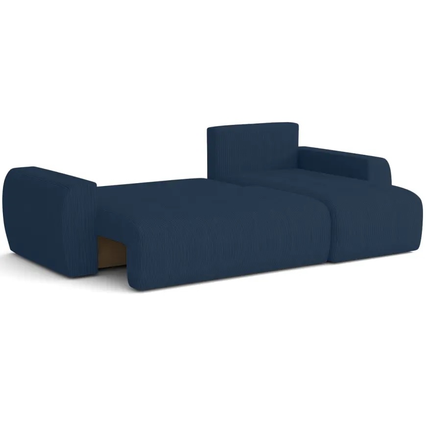 Dodatkowym atutem narożnika jest pojemnik na pościel, który ułatwia przechowywanie kołder i poduszek, pomagając utrzymać porządek w salonie. Całość utrzymana w nowoczesnym stylu świetnie komponuje się z różnymi aranżacjami wnętrz, dodając im elegancji i funkcjonalności.
