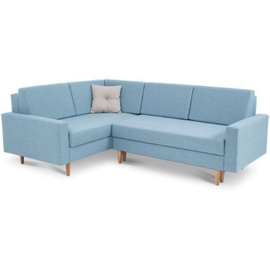 Bardzo nowoczesny narożnik Kayla przykuwa uwagę swoim klasycznym, prostym, wręcz idealnym kształtem. Jest rozkładany, a powierzchnia spania wynosi 125x211 cm. Posiada jeden pojemnik do przechowywania pościeli. Zastosowany wspomagający sposób rozkładania w tym modelu to DL. Wypełnienie siedziska stanowi sprężyna bonell w połączeniu z pianką, które idealnie dopasowują się do sylwetki. Narożnik świetnie sprawdzi się w każdym domu, zwłaszcza w pokoju dziennym czy salonie.