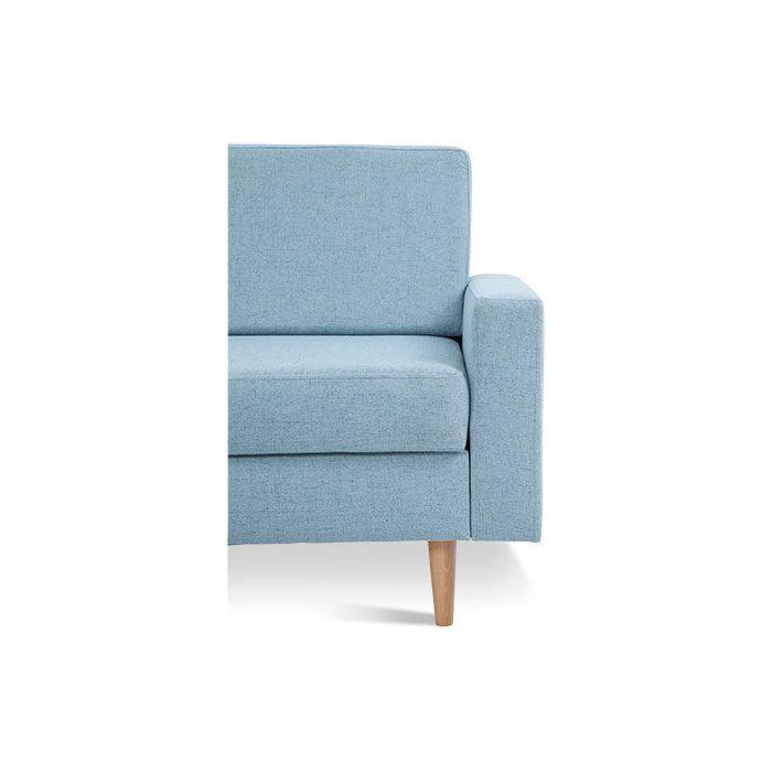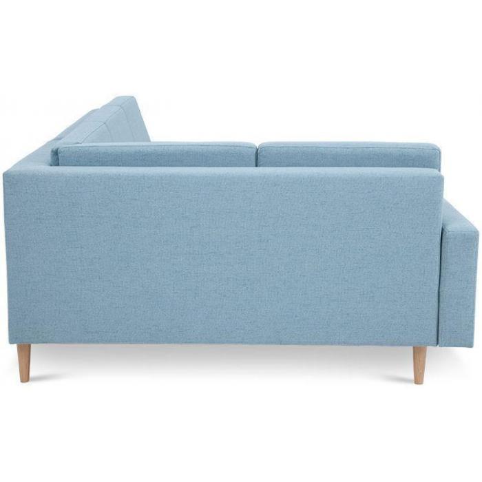 Kanapa narożna Kayla tapicerowana jest tkaniną w pastelowym, jasnym kolorze. Takie wykończenie to świetna baza pod budowę całej aranżacji. Lekko profilowane oparcie oraz podłokietniki zapewniają wygodę podczas użytkowania.