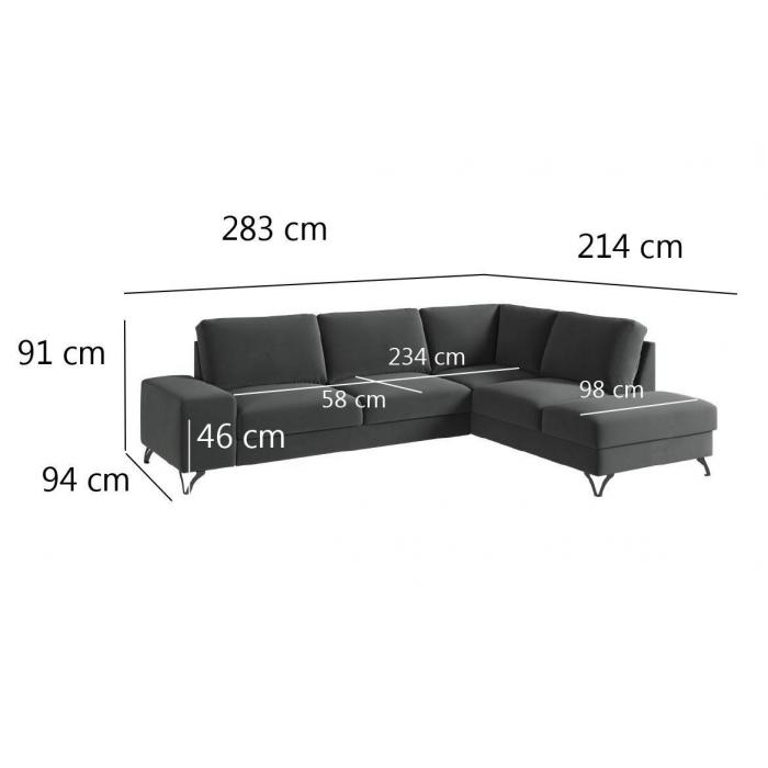 Kanapa narożna z kolekcji Kenzo jest w kształcie litery L i świetnie wpasuje się zarówno do pokoju dziennego jak i salonu.