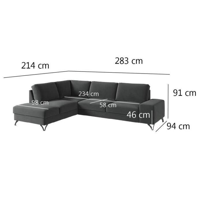 Kanapa narożna z kolekcji Kenzo jest w kształcie litery L i świetnie wpasuje się zarówno do pokoju dziennego jak i salonu.