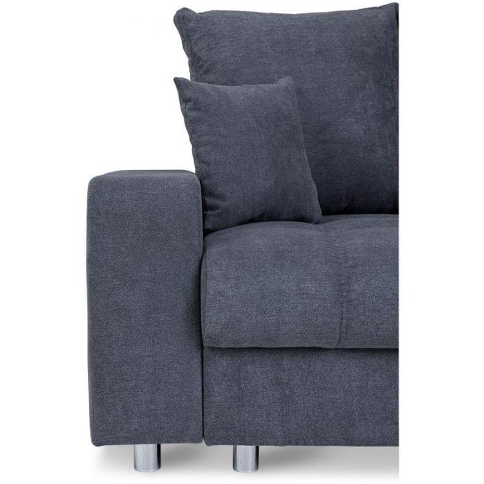 Kanapa narożna Kronos tapicerowana jest tkaniną w kolorze ciemnego popielu. Delikatne pikowania zastosowane na tapicerce pozwalają na aranżację salonu również w stylu glamour. Uniwersalny odcień tapicerki pozwala na łatwe dopasowanie wyglądu narożnika do pozostałych mebli znajdujących się w pomieszczeniu. W komplecie znajdują się cztery poduszki oparciowe oraz dwie mniejsze, pełniące funkcję ozdobną. Nóżki na których osadzono mebel wykonano z tworzywa sztucznego w srebrnym kolorze.