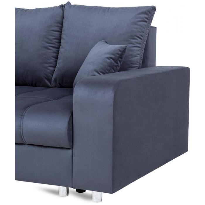 Kanapa narożna Kronos tapicerowana jest tkaniną Manila w kolorze ciemnego popielu. Delikatne pikowania zastosowane na tapicerce pozwalają na aranżację salonu również w stylu glamour. Uniwersalny odcień tapicerki pozwala na łatwe dopasowanie wyglądu narożnika do pozostałych mebli znajdujących się w pomieszczeniu. W komplecie znajdują się cztery poduszki oparciowe oraz dwie mniejsze, pełniące funkcję ozdobną. Nóżki na których osadzono mebel wykonano z tworzywa sztucznego w srebrnym kolorze.