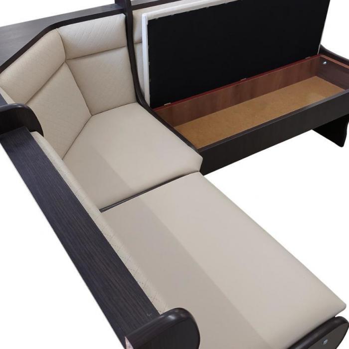 Ten model łączy komfort, trwałość i styl. Tapicerka z ekoskóry oraz piankowe siedzisko zapewniają wygodę, a solidna konstrukcja z laminowanej płyty wiórowej sprawia, że narożnik będzie służył przez wiele lat, wprowadzając do kuchni elegancki i przytulny charakter.