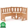 Brak tapicerki nadaje narożnikowi prostoty i naturalnego wyglądu, a jednocześnie ułatwia utrzymanie czystości. Drewniana konstrukcja zapewnia stabilność i wieloletnie użytkowanie, dzięki czemu narożnik jest nie tylko estetyczny, ale i funkcjonalny.