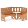 Drewniana konstrukcja gwarantuje stabilność i odporność na codzienne użytkowanie. Brak tapicerki sprawia, że narożnik jest łatwy w utrzymaniu czystości, a jego naturalny charakter doskonale komponuje się z kuchniami w stylu rustykalnym, klasycznym czy skandynawskim.