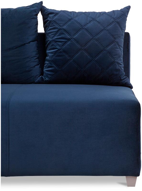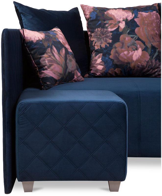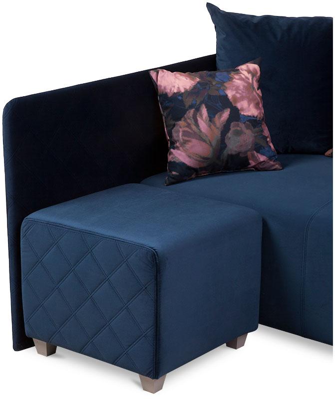 Kanapa narożna Lazio tapicerowana jest tkaniną w żywym, ciemnym kolorze. Nóżki na których osadzono mebel wykonano z tworzywa sztucznego w szarym kolorze. Dekoracyjne poduszki oparciowe zapewniają komfortowy wypoczynek. Delikatne przeszycia na poduszce i siedzisku tworzą ciekawy efekt wizualny. Całość świetnie się prezentuje.