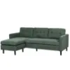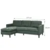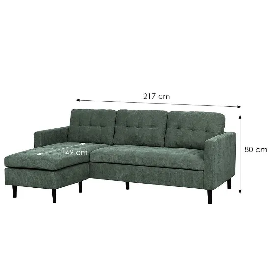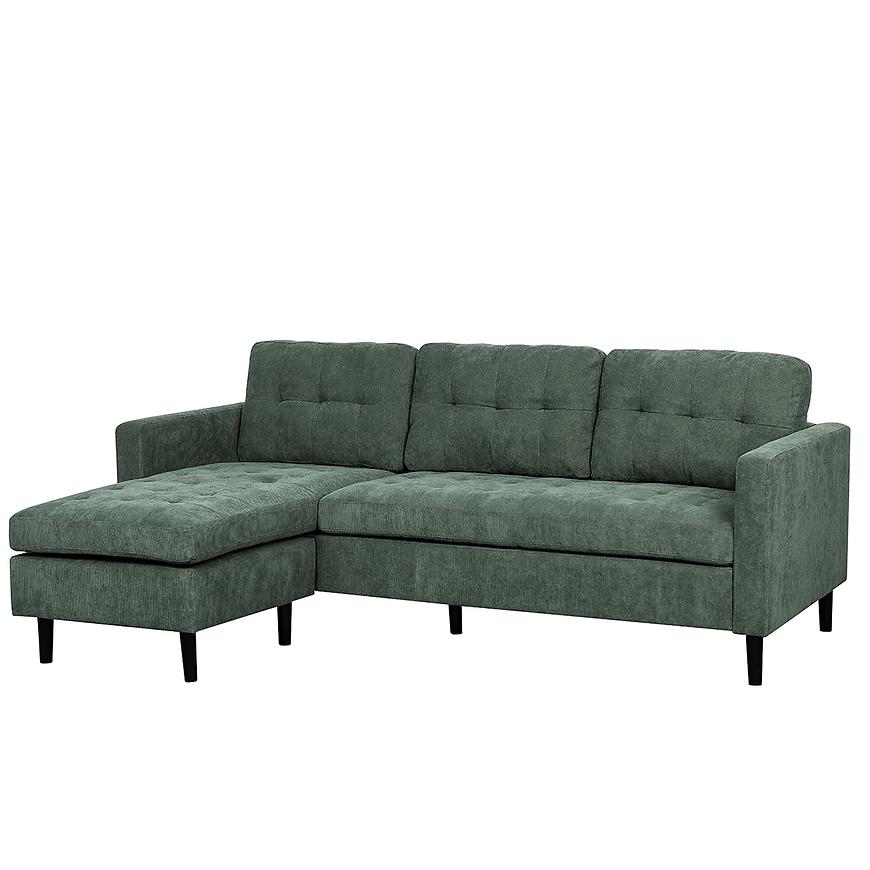 Tapicerowany przyjemną w dotyku tkaniną w głębokim, zielonym kolorze, narożnik Lillehammer przyciąga wzrok i wprowadza do wnętrza atmosferę relaksu oraz świeżości. Trzy duże poduchy oparciowe zapewniają wygodne podparcie, a siedzisko ze sprężynami falistymi gwarantuje trwałość oraz odpowiednią elastyczność – idealną zarówno do codziennego wypoczynku, jak i przyjmowania gości.