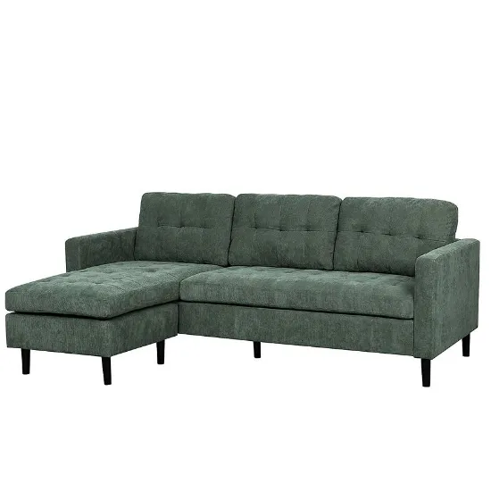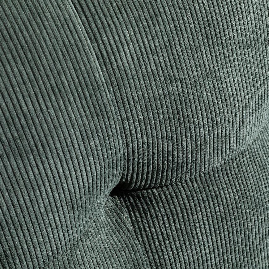 Tapicerowany tkaniną w modnym zielonym kolorze.
