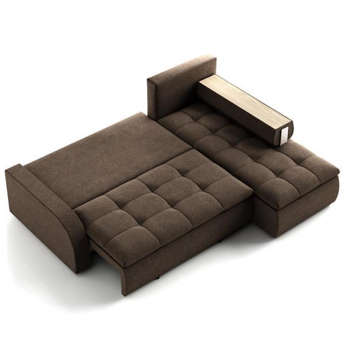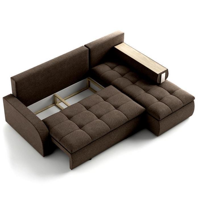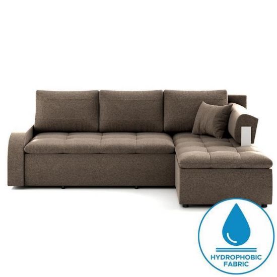 Narożnik Link został pokryty tkaniną hydrofobową z funkcją spania typu DL- jest to szybki, prosty i wygodny sposób rozkładania. Jest jednym z najbardziej popularnych systemów rozkładania, który jest wykorzystywany w narożnikach. Polega on na lekkim podniesieniu i wysunięciu siedziska, a następnie należy złożyć oparcie. Pojemnik, do którego można schować pościel, dodatkowe koce czy też poduszki. Po rozłożeniu powierzchnia spania wynosi 206x134 cm. W komplecie mebla są poduszki. W siedzisku zastosowano sprężynę falistą, która dostosowuje się do ciężaru i kształtu ciała, zapewniając tym samym wysoki komfort siedzenia. Ten niepowtarzalny mebel wypoczynkowy stworzono z myślą o funkcjonalności i eleganckim wyglądzie. Narożnik dostępny w wersji prawostronnej i lewostronnej.