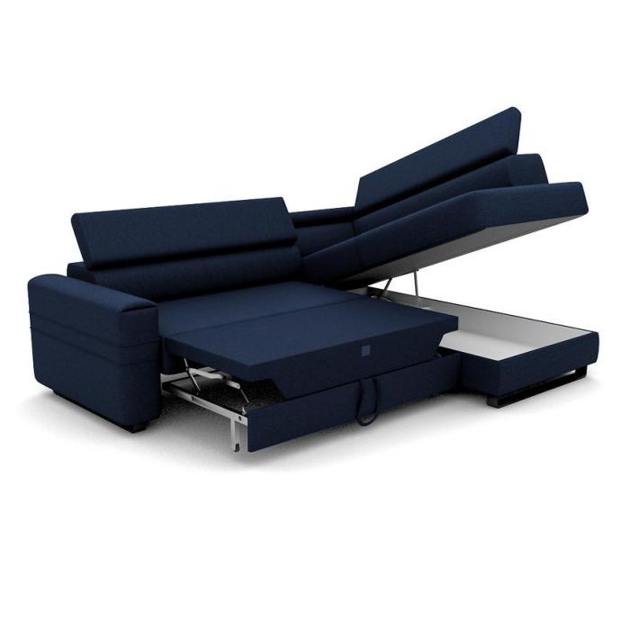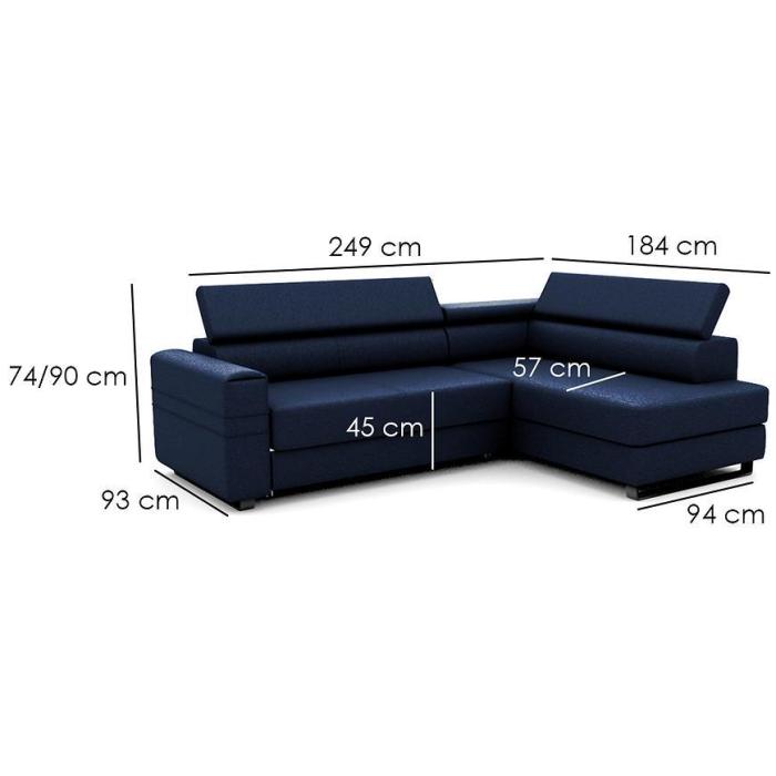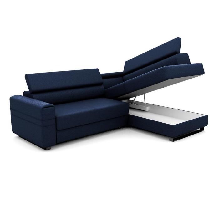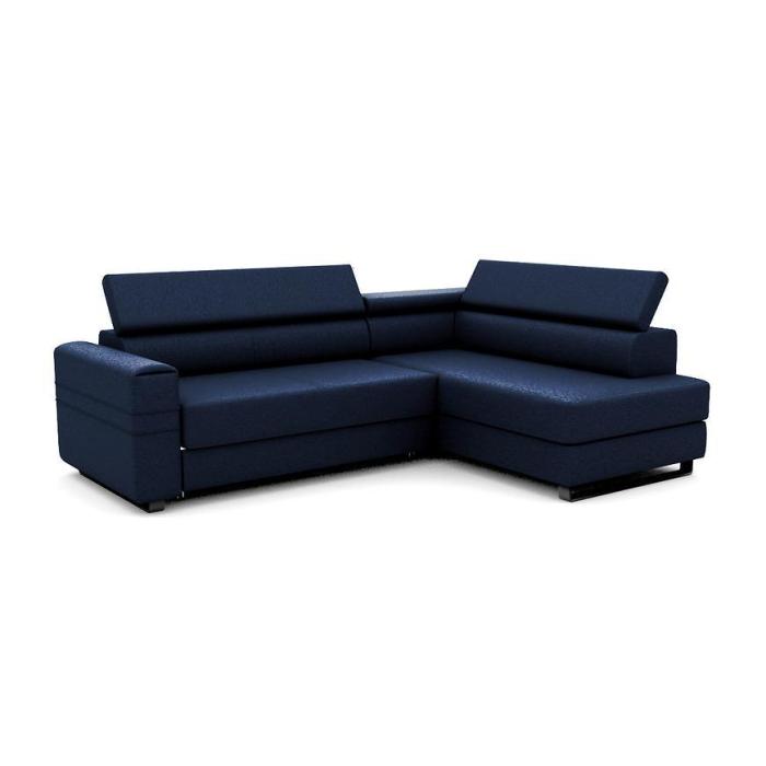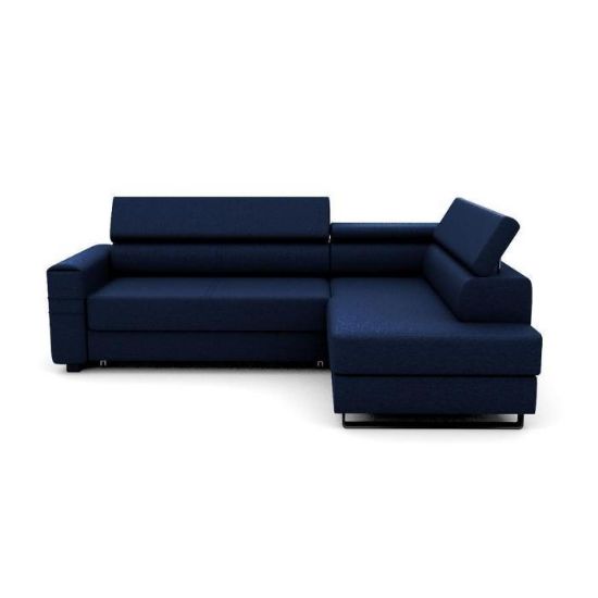 Rozkładana sofa narożna Livio z funkcją spania, posiada jeden pojemnik na pościel - dodatkowe miejsce do przechowywania. Powierzchnia spania po rozłożeniu narożnika wynosi 124x194cm. Zastosowany sposób rozkładania w tym modelu to delfin, prosty i szybki w obsłudze. Regulowane, ruchome zagłówki oraz delikatnie profilowane oparcie zapewniają komfortowy wypoczynek.