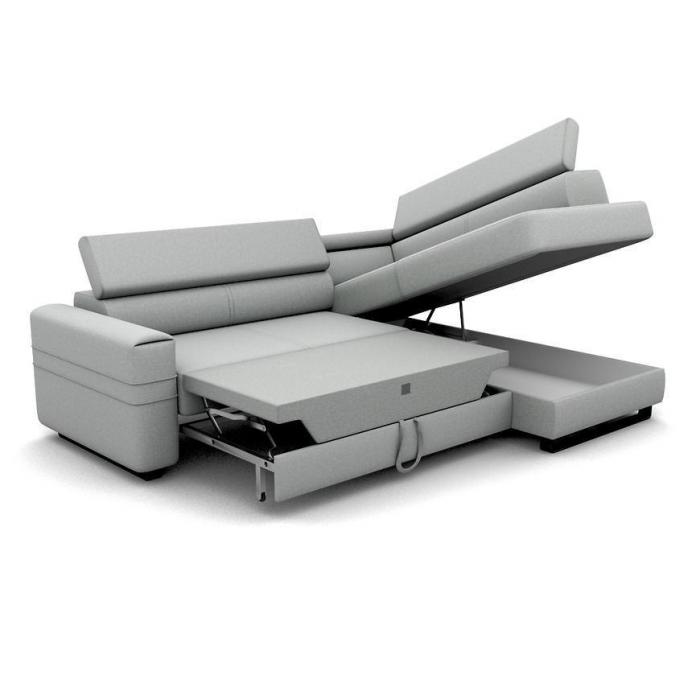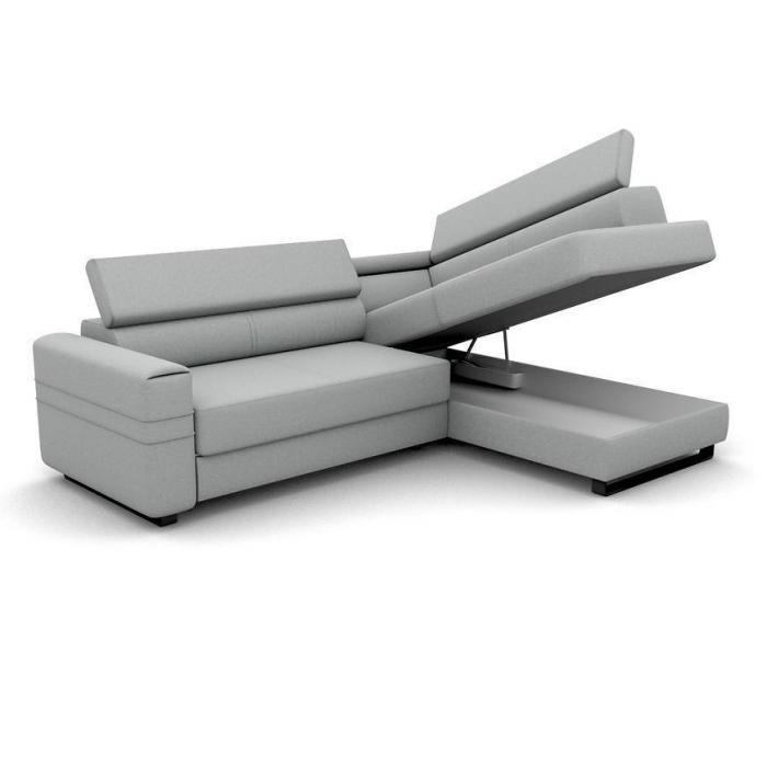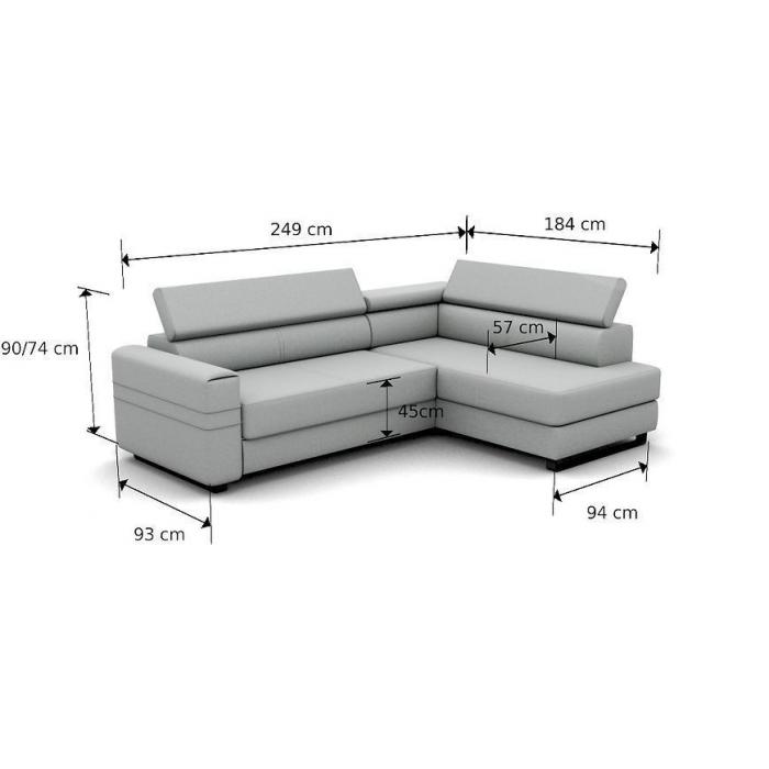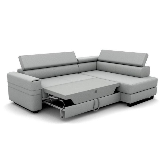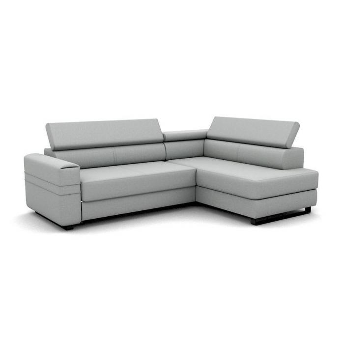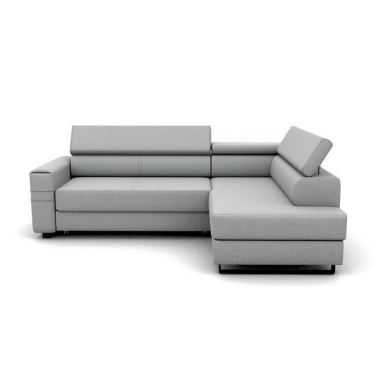 Rozkładana sofa narożna Livio z funkcją spania, posiada jeden pojemnik na pościel - dodatkowe miejsce do przechowywania. Powierzchnia spania po rozłożeniu narożnika wynosi 124x194cm. Zastosowany sposób rozkładania w tym modelu to delfin, prosty i szybki w obsłudze. Regulowane, ruchome zagłówki oraz delikatnie profilowane oparcie zapewniają komfortowy wypoczynek.