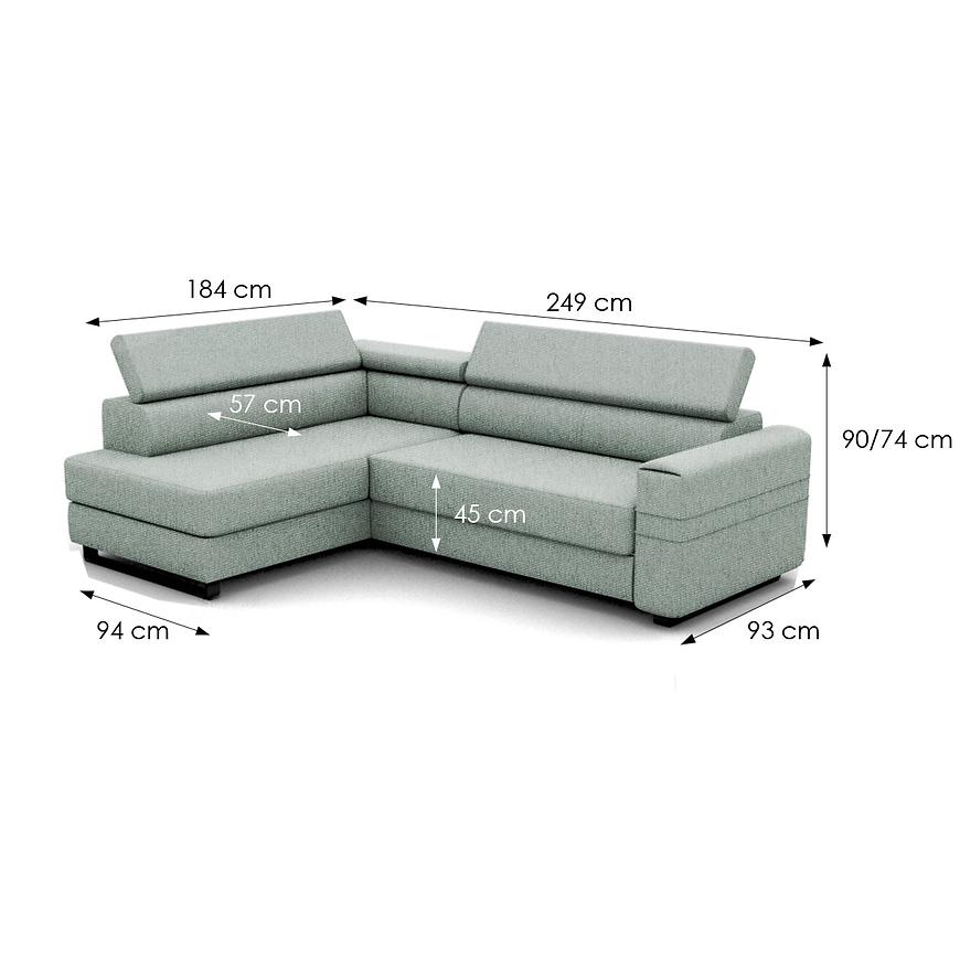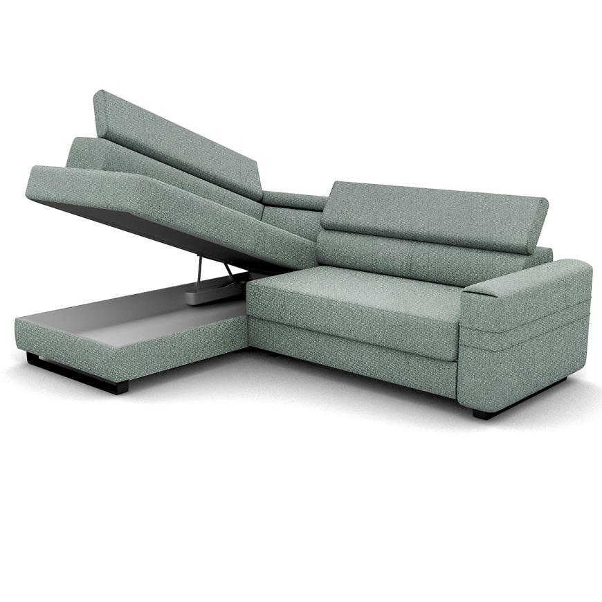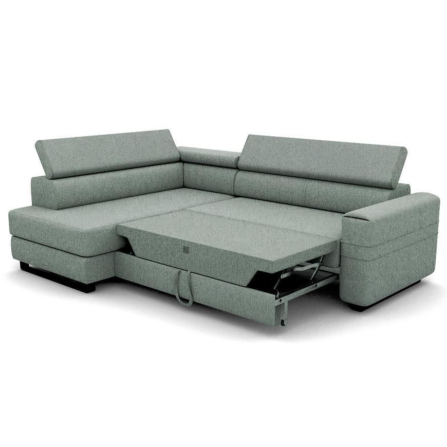 Narożnik Livio posiada funkcję spania, po rozłożeniu to okazjonalne miejsce do spania o wymiarach 124x194 cm. System rozkładania typu "delfin" zapewnia szybkie i łatwe rozłożenie, co czyni go idealnym rozwiązaniem na noclegi gości. Dodatkowo, narożnik został wyposażony w pojemnik na pościel, który pozwala na przechowywanie kołder i poduszek, zapewniając więcej miejsca w szafie.