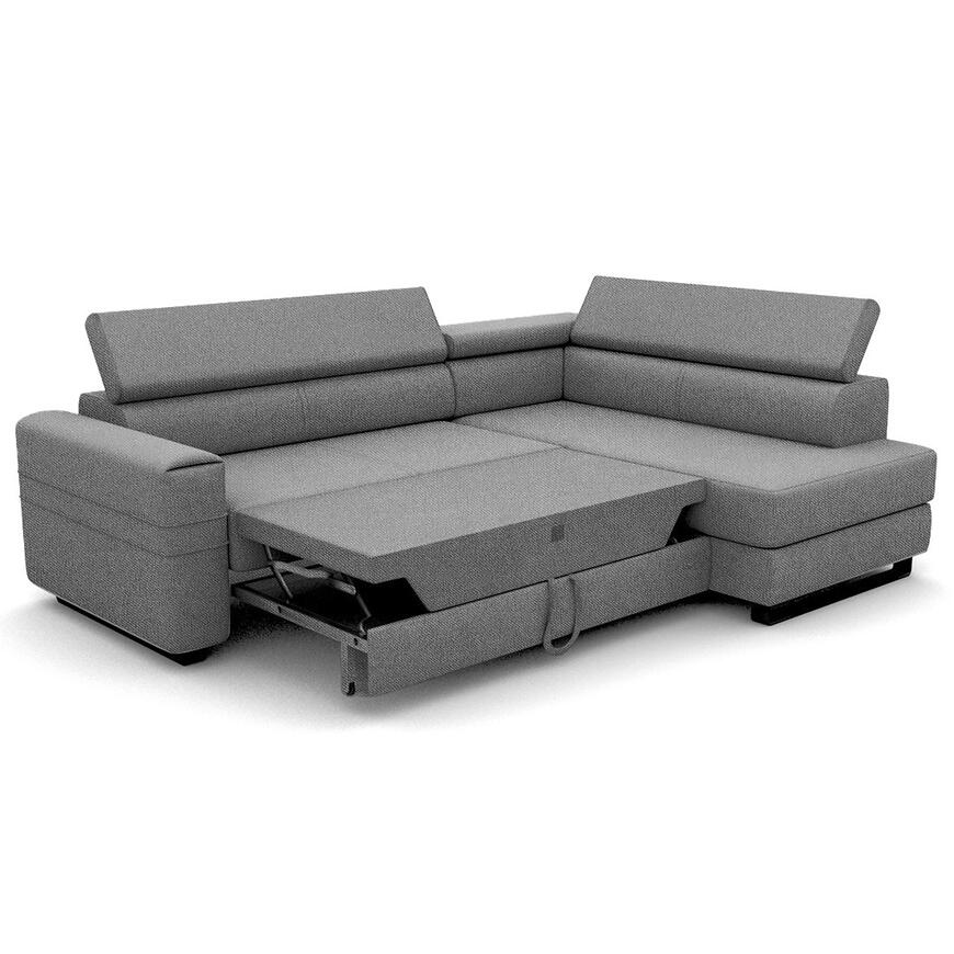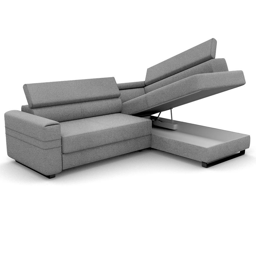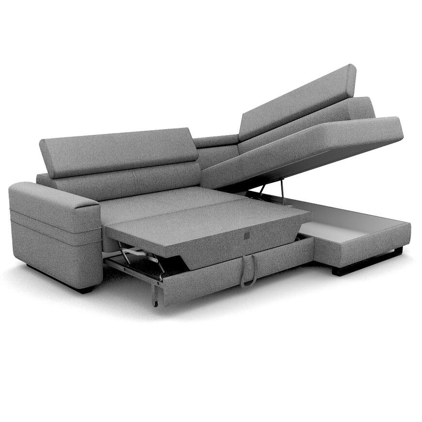 Narożnik Livio posiada funkcję spania, dzięki czemu po rozłożeniu to okazjonalne miejsce do spania o wymiarach 124x194 cm. System rozkładania typu "delfin" zapewnia szybkie i łatwe rozłożenie, co czyni go idealnym rozwiązaniem na noclegi gości. Dodatkowo, narożnik został wyposażony w pojemnik na pościel, który pozwala na przechowywanie kołder i poduszek, zapewniając więcej miejsca w szafie.