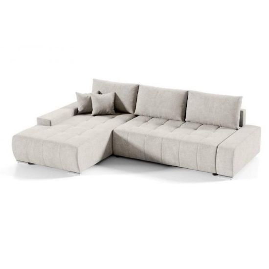 Sofa narożna Loara to najbardziej praktyczny mebel, który będzie pasował do małego salonu, ale znajdzie swoje miejsce również w innym pomieszczeniu. Powierzchnia spania wynosi 140x215cm. Loara posiada jeden pojemnik na pościel, a system rozkładania typu DL to szybki, prosty i wygodny sposób rozkładania. Atutem narożnika jest pikowane siedzisko oraz duże poduszki oparciowe.