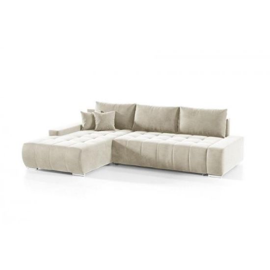 Sofa narożna Loara to najbardziej praktyczny mebel, który będzie pasował do małego salonu, ale znajdzie swoje miejsce również w innym pomieszczeniu. Powierzchnia spania wynosi 140x215cm. Loara posiada jeden pojemnik na pościel, a system rozkładania typu DL to szybki, prosty i wygodny sposób rozkładania. Atutem narożnika jest pikowane siedzisko oraz duże poduszki oparciowe.