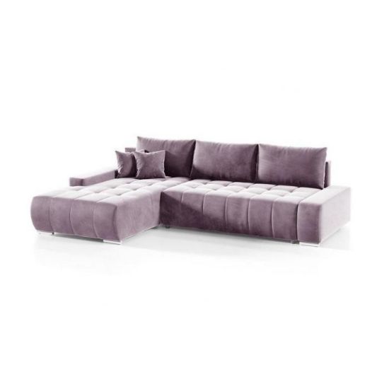 Sofa narożna Loara to najbardziej praktyczny mebel, który będzie pasował do małego salonu, ale znajdzie swoje miejsce również w innym pomieszczeniu. Powierzchnia spania wynosi 140x215cm. Loara posiada jeden pojemnik na pościel, a system rozkładania typu DL to szybki, prosty i wygodny sposób rozkładania. Atutem narożnika jest pikowane siedzisko oraz duże poduszki oparciowe.