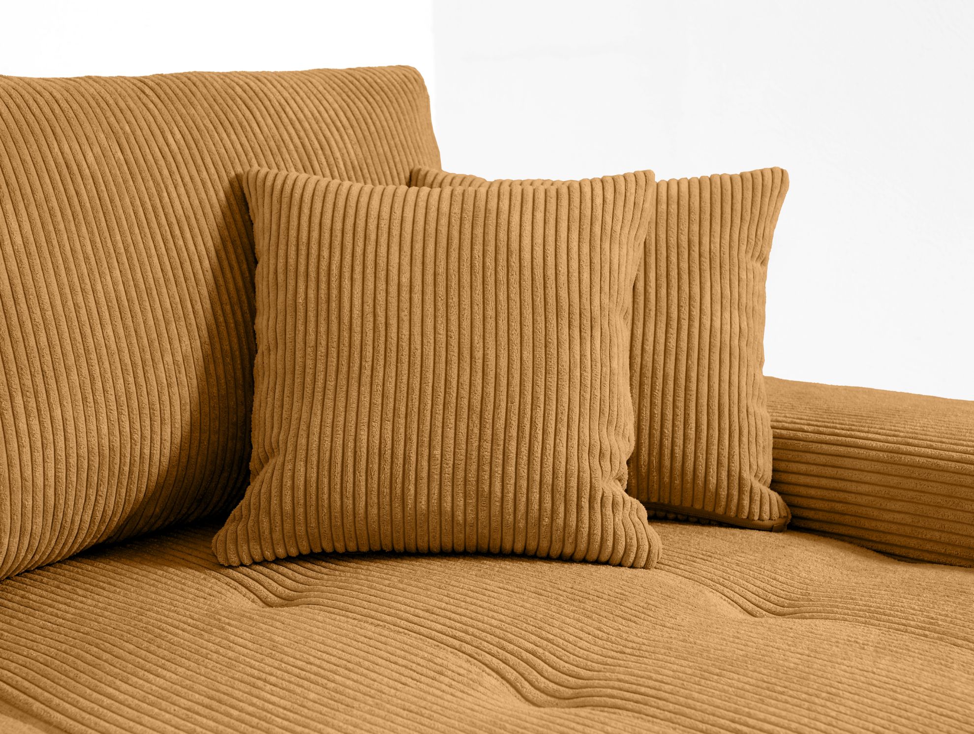 Wygodny narożnik Loara występuje w wielu wersjach kolorystycznych. Obicie narożnika stanowi ultramiękka sztruksowa tkanina w grube prążki. Tył narożnika również obity jest tym samym materiałem. Kolorystyka narożników została idealnie dopasowana do najmodniejszych kolorów panujących w trendach, co pozwala tworzyć niezwykłe kombinacje! W narożniku zastosowano automatyczny sposób rozkładania DL. To łatwy i szybki sposób ułatwiający rozkładanie.