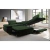 Sofa narożna posiada pojemnik na pościel, w którym zmieszczą się kołdry zachowując porządek w pomieszczeniu. Narożnik codziennego wyposażony w sprężyny faliste, wygodne oparcie oraz regulowany zagłówek zadowoli nawet najbardziej wymagających miłośników wielogodzinnych drzemek. Wysokość siedziska wynosi 43cm.